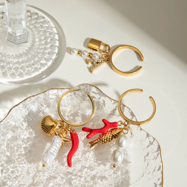 خاتم دندشة سمكة ستانلس ستيل مقاوم للخدش، طلاء ذهب 18ثابت، لايتأثر بالماء ولايسبب التحسس.