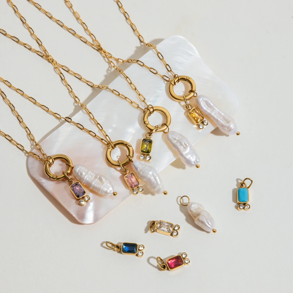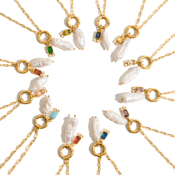 قلادة مطعمة بالؤلؤ الطبيعي ستانلس ستيل مقاوم للخدش، طلاء ذهب 18ثابت، لايتأثر بالماء ولايسبب التحسس.