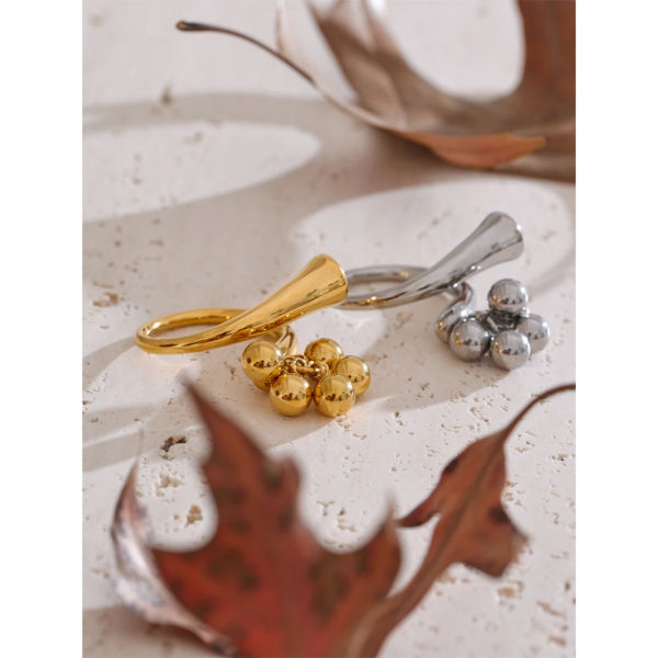 خاتم بإضافة خرز كُروية ستانلس ستيل مقاوم للخدش، طلاء ذهب 18ثابت، لايتأثر بالماء ولايسبب التحسس.