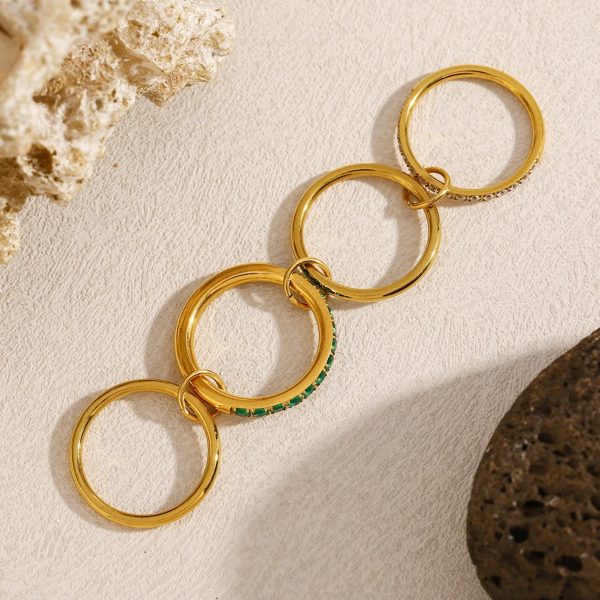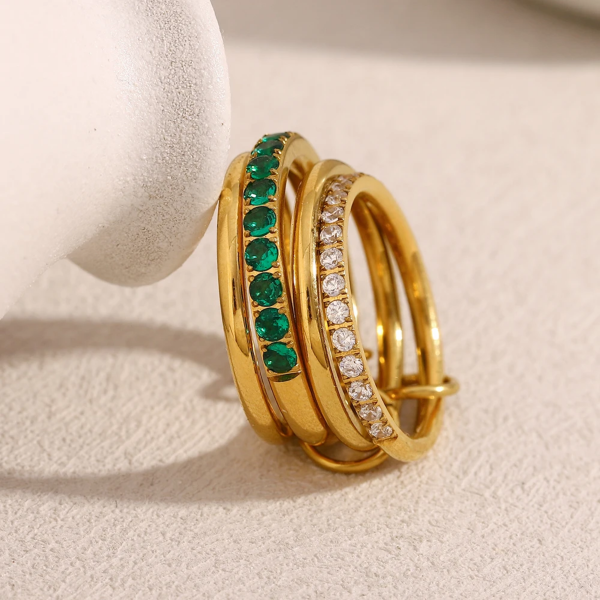 خاتم متعدد الطبقات مرصع بالزاركون الملون ستانلس ستيل مقاوم للخدش، طلاء ذهب 18ثابت، لايتأثر بالماء ولايسبب التحسس.