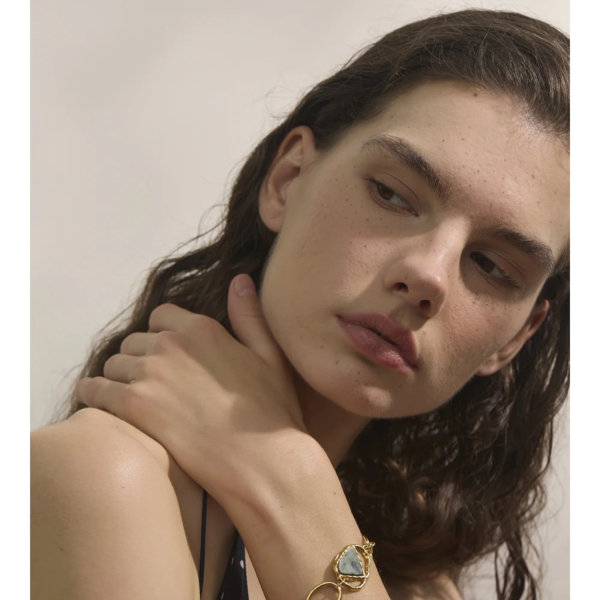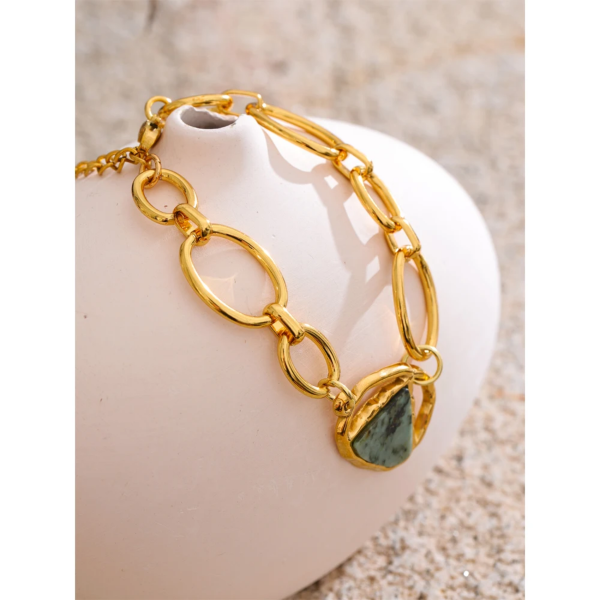 سوار بتصميم حلقات مطعم بحجر طبيعي ستانلس ستيل مقاوم للخدش، طلاء ذهب 18ثابت، لايتأثر بالماء ولايسبب التحسس.