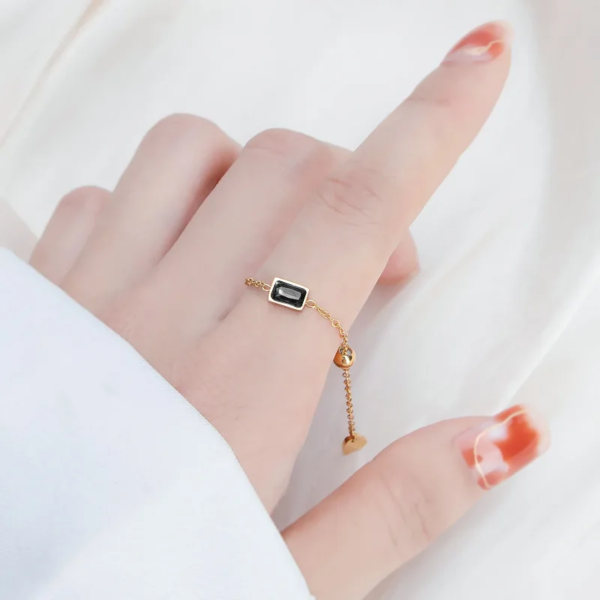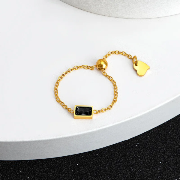 خاتم بتصميم سلسلة مطعم بحجر الزاركون ،ستانلس ستيل مقاوم للخدش، طلاء ذهب 18ثابت، لايتأثر بالماء ولايسبب التحسس.