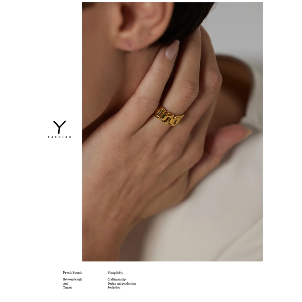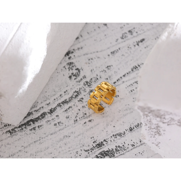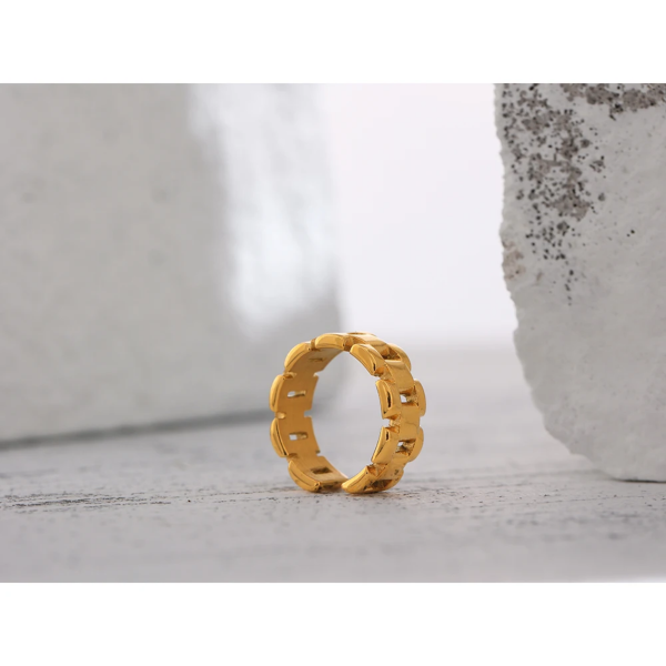 خاتم بتصميم كلاسيكي واسع ،ستانلس ستيل مقاوم للخدش، طلاء ذهب 18ثابت، لايتأثر بالماء ولايسبب التحسس.