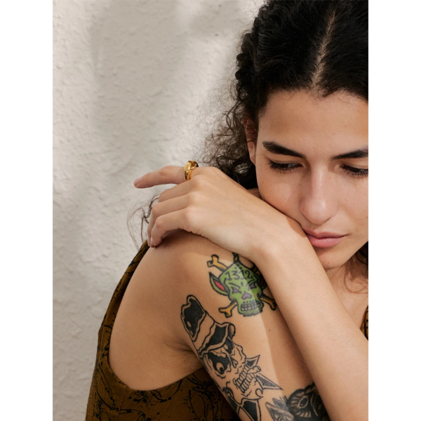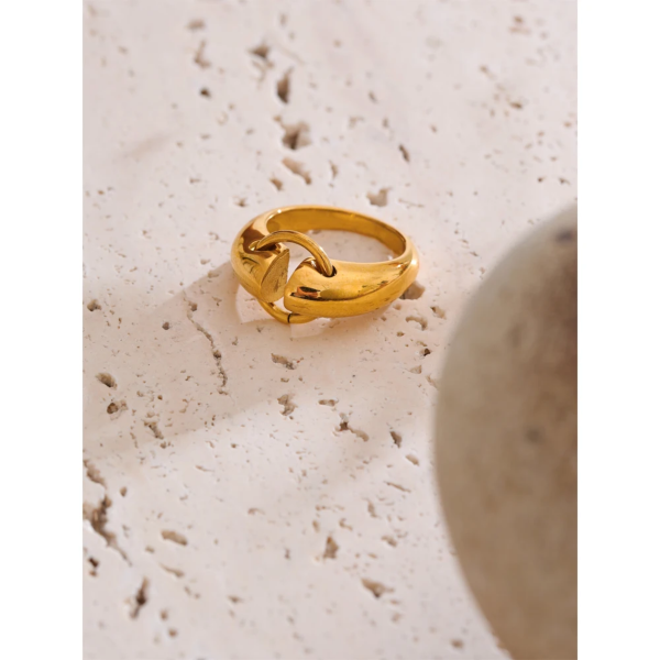 خاتم بتصميم كلاسيكي تربطه حلقة ،ستانلس ستيل مقاوم للخدش، طلاء ذهب 18ثابت، لايتأثر بالماء ولايسبب التحسس.