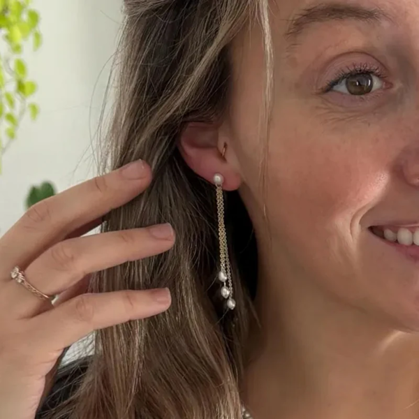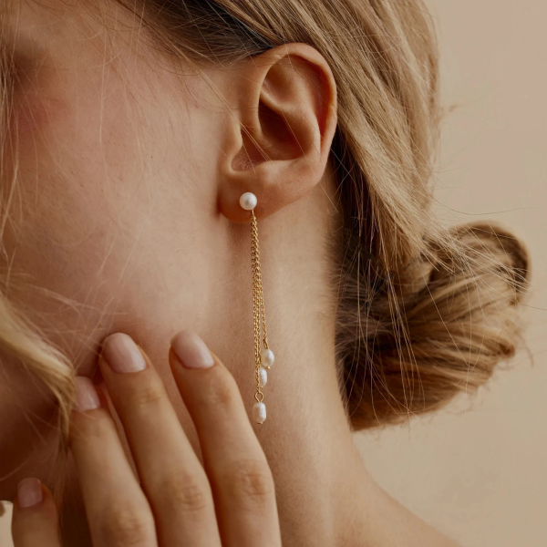 تراچي بتصميم سلسلة متدلية مطعمة بحبات اللؤلؤ ،ستانلس ستيل مقاوم للخدش، طلاء ذهب 18ثابت، لايتأثر بالماء ولايسبب التحسس.