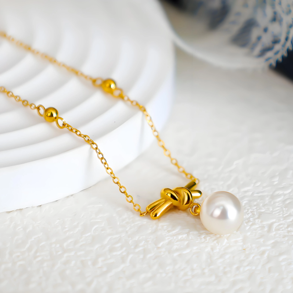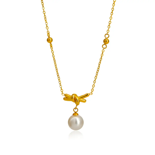 قلادة بتصميم عقدة مطعمة بلؤلؤة ،ستانلس ستيل مقاوم للخدش، طلاء ذهب 18ثابت، لايتأثر بالماء ولايسبب التحسس.