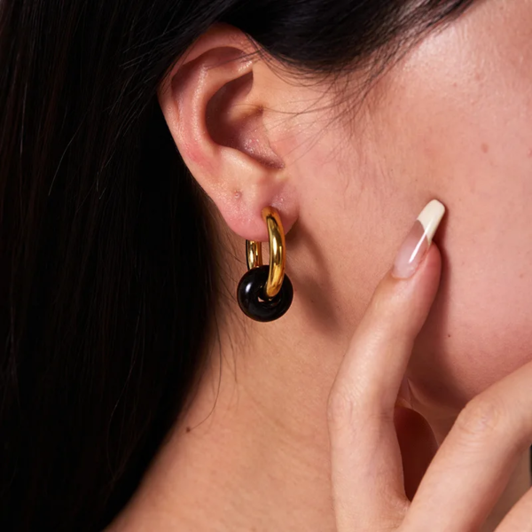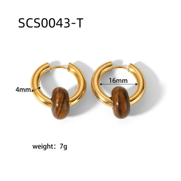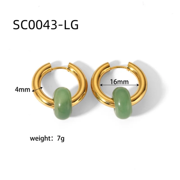تراچي حلق مطعمة بحجر ملون ،ستانلس ستيل مقاوم للخدش، طلاء ذهب 18ثابت، لايتأثر بالماء ولايسبب التحسس.