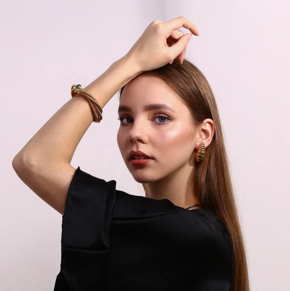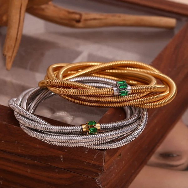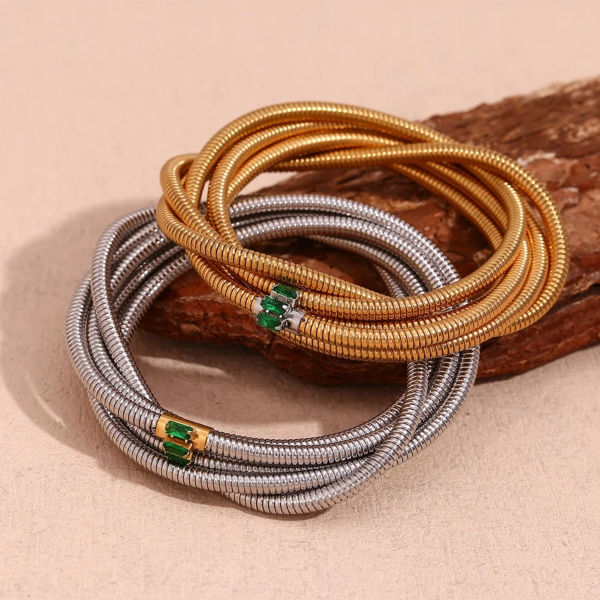 سوار بتصميم سلسلة ثعبان متعدد الطبقات ،ستانلس ستيل مقاوم للخدش، طلاء ذهب 18ثابت، لايتأثر بالماء ولايسبب التحسس.