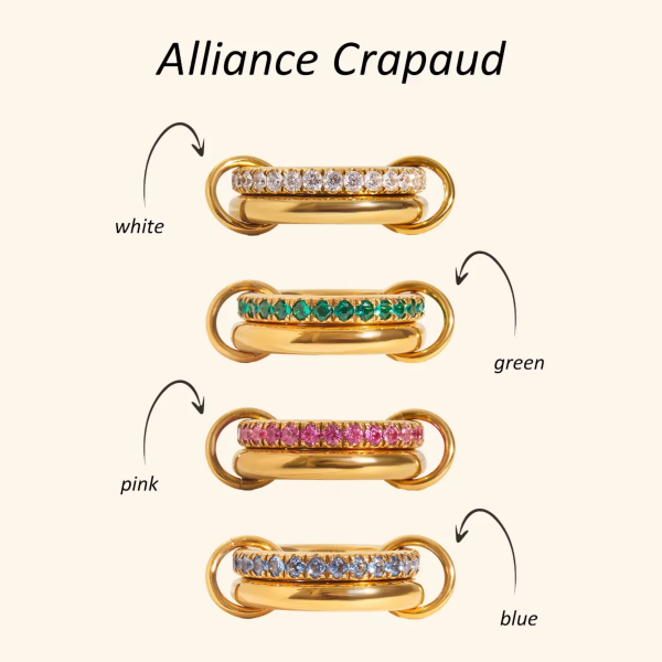 خاتم بطبقتين مرصع بالزاركون الملون ،ستانلس ستيل مقاوم للخدش، طلاء ذهب 18ثابت، لايتأثر بالماء ولايسبب التحسس