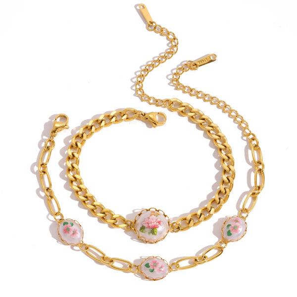 سوار مطعم بقرص ورد ,ستانلس ستيل مقاوم للخدش، طلاء ذهب 18ثابت، لايتأثر بالماء ولايسبب التحسس