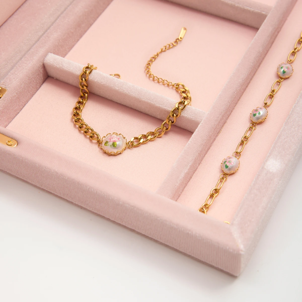 سوار مطعم بثلاث اقراص ورد ،ستانلس ستيل مقاوم للخدش، طلاء ذهب 18ثابت، لايتأثر بالماء ولايسبب التحسس