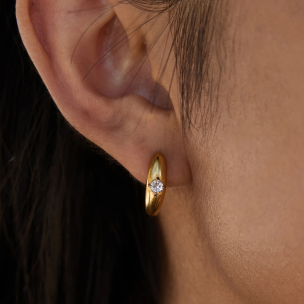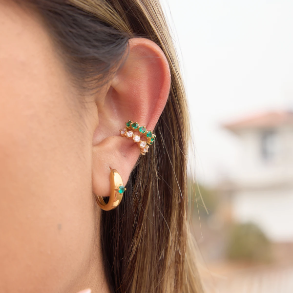 تراچي حلق مطعمة بالزاركون الأخضر،ستانلس ستيل مقاوم للخدش، طلاء ذهب 18ثابت، لايتأثر بالماء ولايسبب التحسس