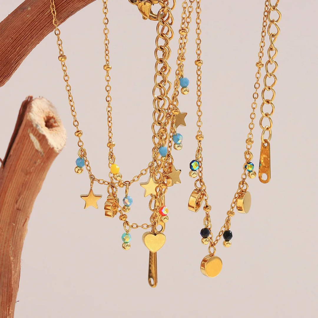سوار فرفشة أحجار ناعمة بإضافات قلب ،نجمة ،وردة ستانلس ستيل مقاوم للخدش، طلاء ذهب 18ثابت، لايتأثر بالماء ولايسبب التحسس.