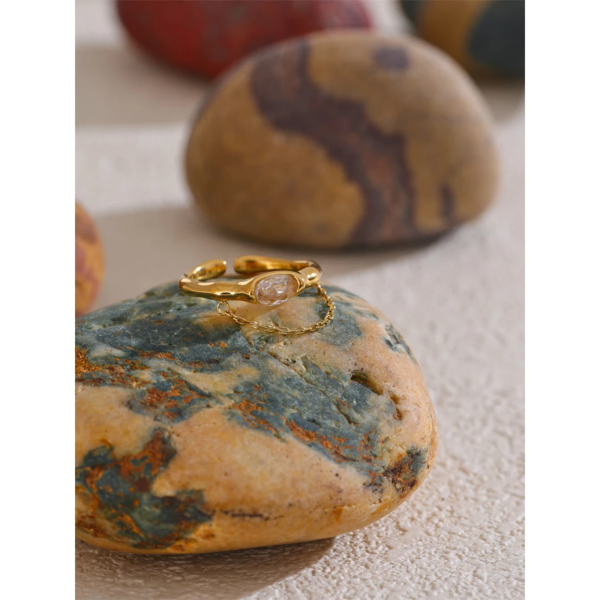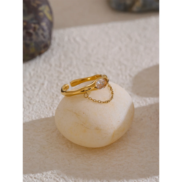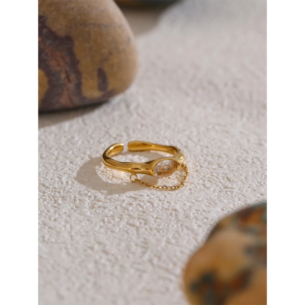 خاتم رفيع مطعم بحجر الزاركون بإضافة سلسلة،ستانلس ستيل مقاوم للخدش، طلاء ذهب 18ثابت، لايتأثر بالماء ولايسبب التحسس