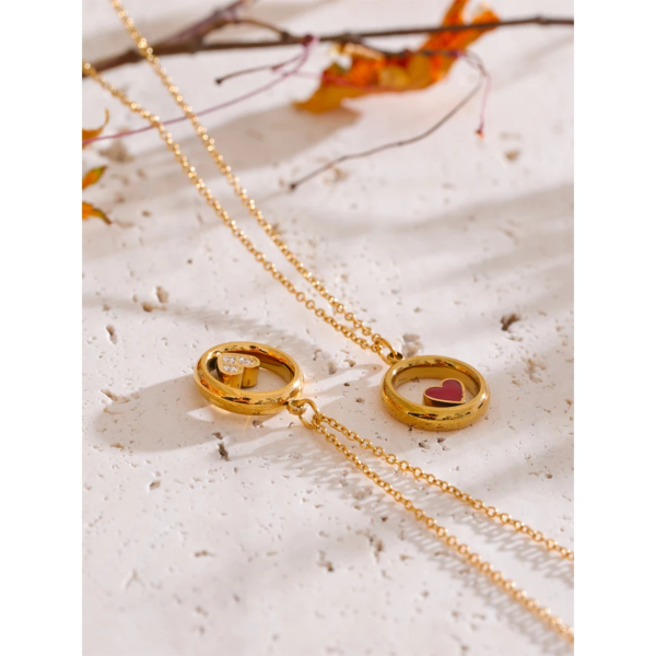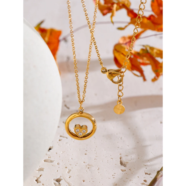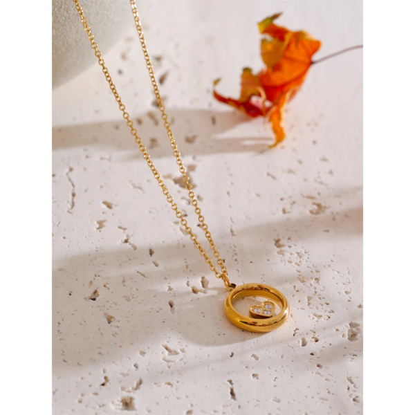قلادة بتصميم دائرة وسطها قلب صغير ،ستانلس ستيل مقاوم للخدش، طلاء ذهب 18ثابت، لايتأثر بالماء ولايسبب التحسس