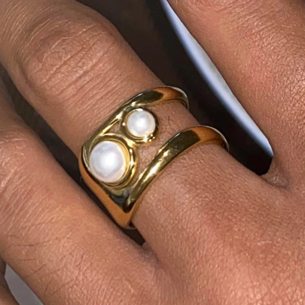 خاتم بتصميم عريض مطعم بالحجر الطبيعي ،ستانلس ستيل مقاوم للخدش، طلاء ذهب 18ثابت، لايتأثر بالماء ولايسبب التحسس