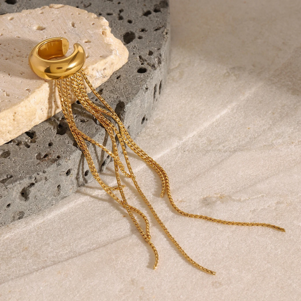 تراچي حلقة بتصميم قطعة واحدة بشراشيب ،ستانلس ستيل مقاوم للخدش، طلاء ذهب 18ثابت، لايتأثر بالماء ولايسبب التحسس.