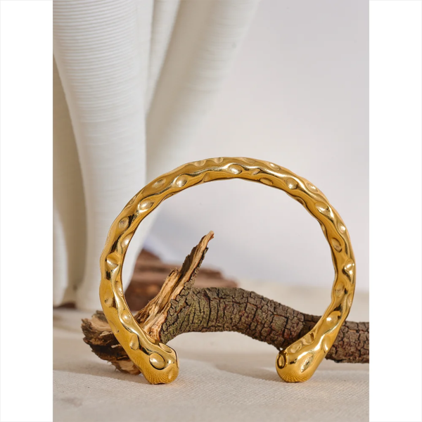 سوار بانگل مفتوح ،ستانلس ستيل مقاوم للخدش، طلاء ذهب 18ثابت، لايتأثر بالماء ولايسبب التحسس