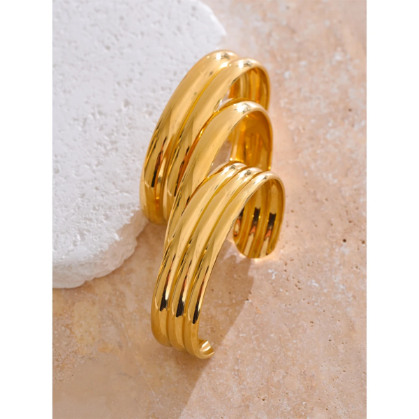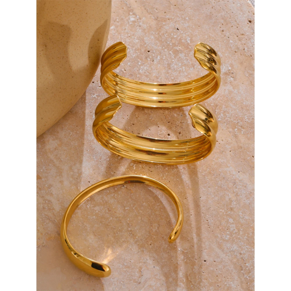 سوار بانگل مفتوح سميك ،ستانلس ستيل مقاوم للخدش، طلاء ذهب 18ثابت، لايتأثر بالماء ولايسبب التحسس.