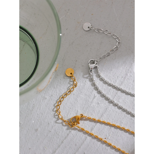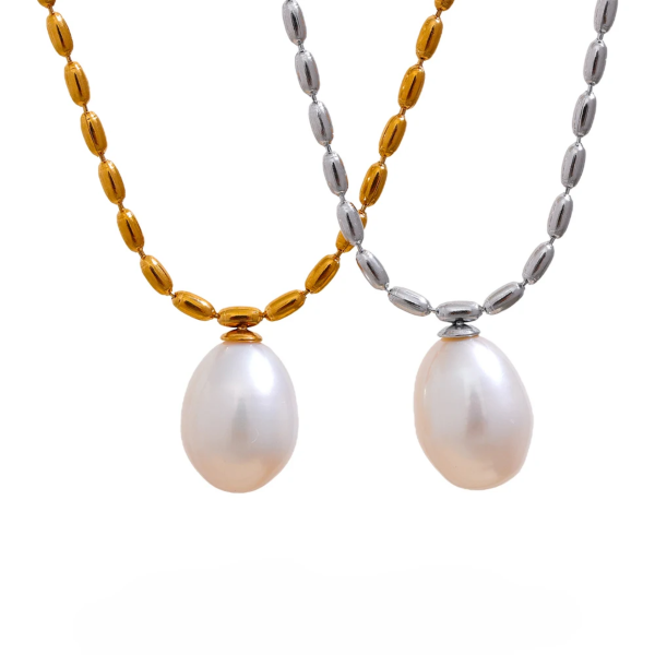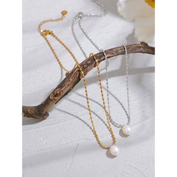 قلادة بتصميم سلسلة مطعمة بالؤلؤة طبيعية ،ستانلس ستيل مقاوم للخدش، طلاء ذهب 18ثابت، لايتأثر بالماء ولايسبب التحسس.