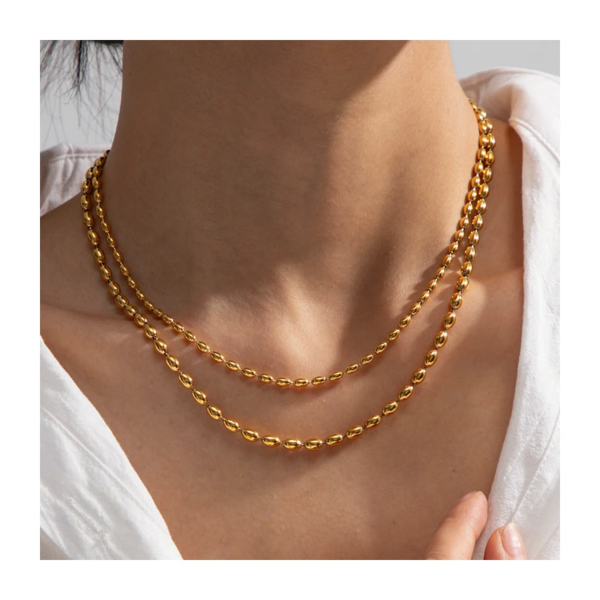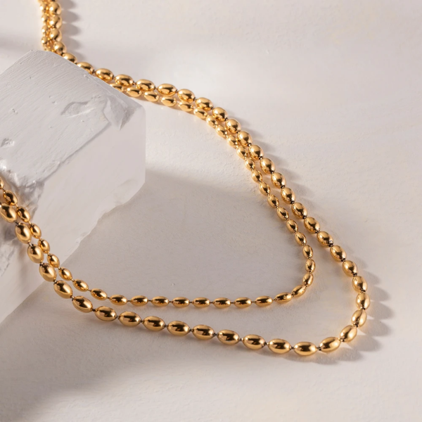 قلادة حبيبات ناعمة بتصميم طبقتين ،ستانلس ستيل مقاوم للخدش، طلاء ذهب 18ثابت، لايتأثر بالماء ولايسبب التحسس