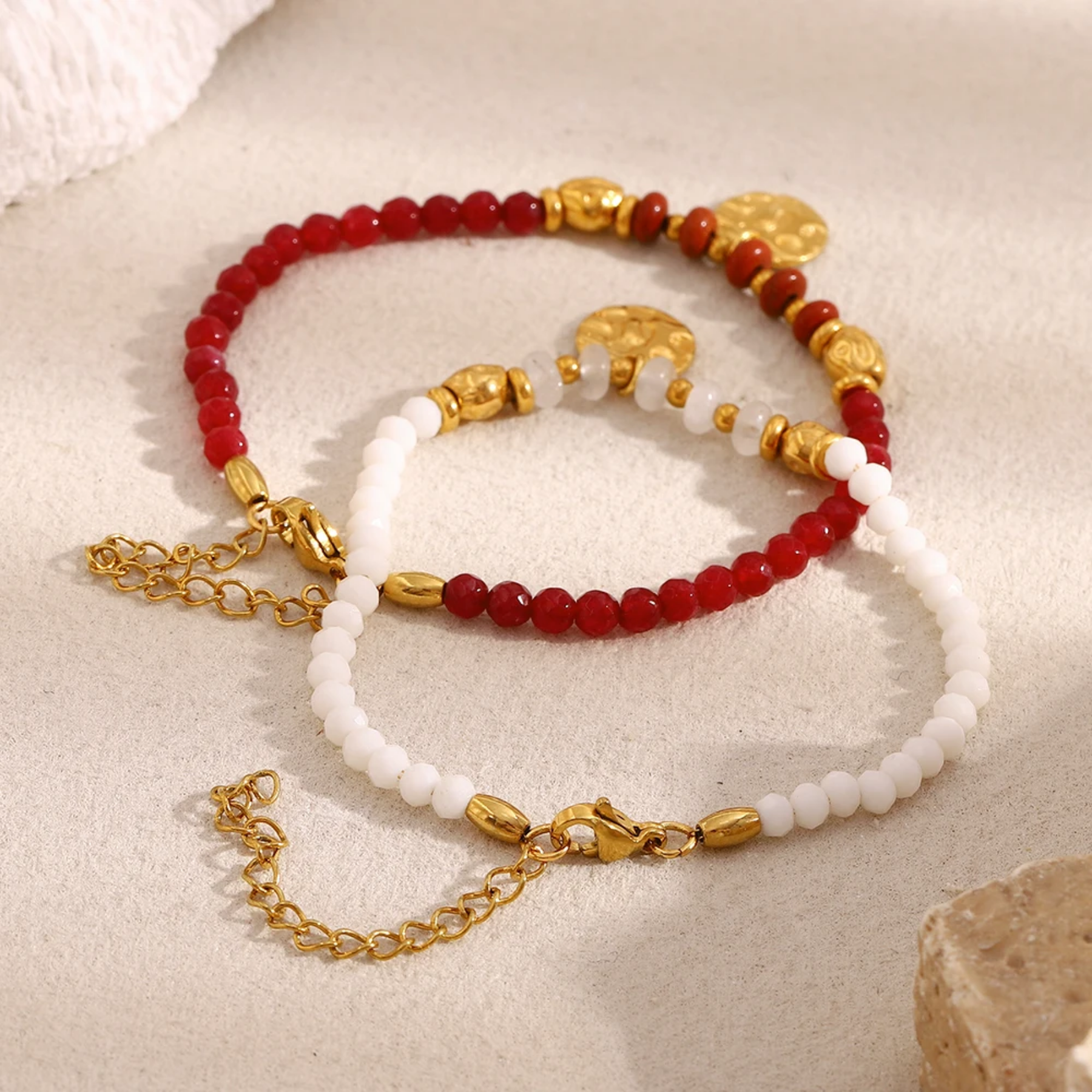 سوار من الحجر الطبيعي الملون ،ستانلس ستيل مقاوم للخدش، طلاء ذهب 18ثابت، لايتأثر بالماء ولايسبب التحسس
