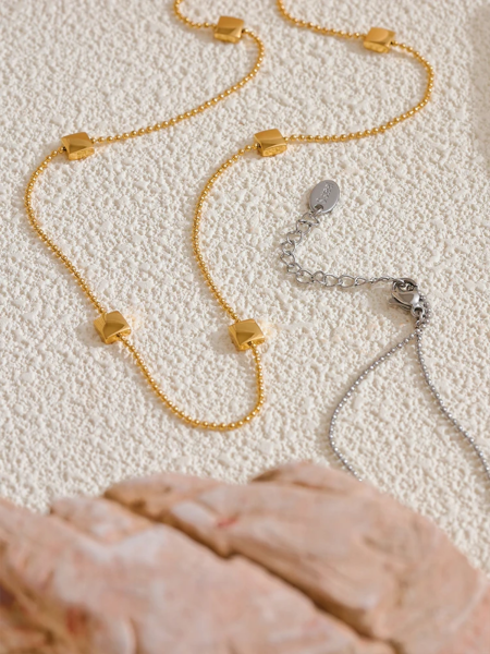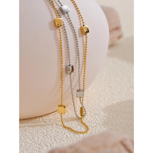 قلادة سلسلة مع الخرز المربع ،ستانلس ستيل مقاوم للخدش، طلاء ذهب 18ثابت، لايتأثر بالماء ولايسبب التحسس