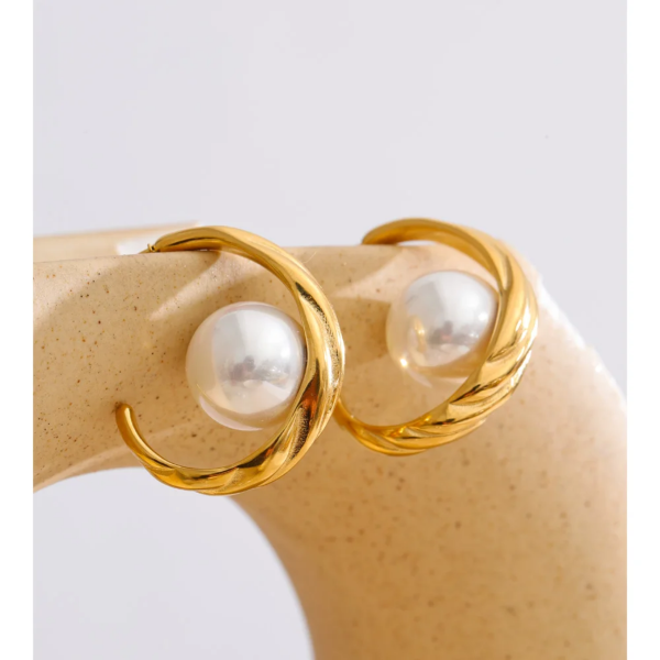 تراچي بتصميم مُنحني وسطها لؤلؤة كبيرة ،ستانلس ستيل مقاوم للخدش، طلاء ذهب 18ثابت، لايتأثر بالماء ولايسبب التحسس