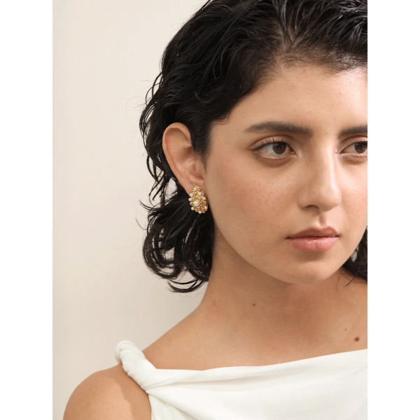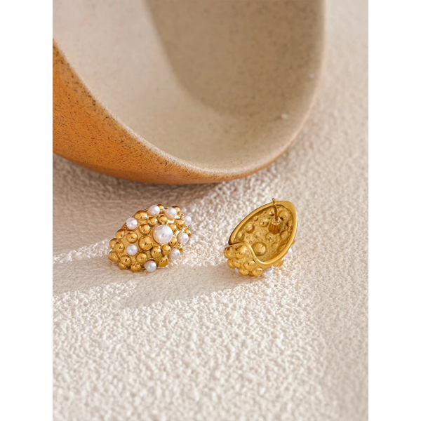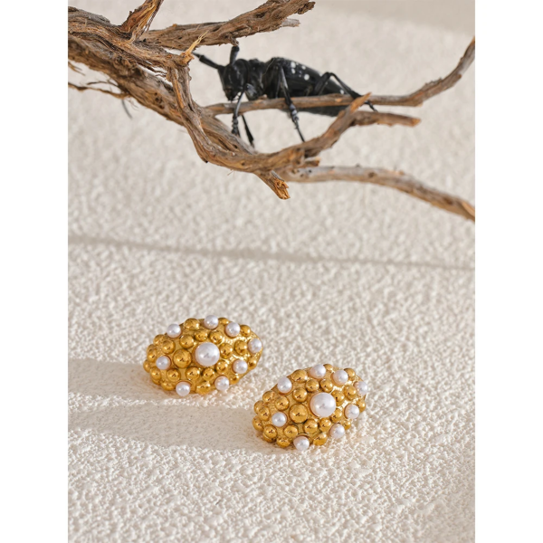 تراچي بتصميم بَقبَقة مطعمة باللؤلؤ الصناعي،ستانلس ستيل مقاوم للخدش، طلاء ذهب 18ثابت، لايتأثر بالماء ولايسبب التحسس