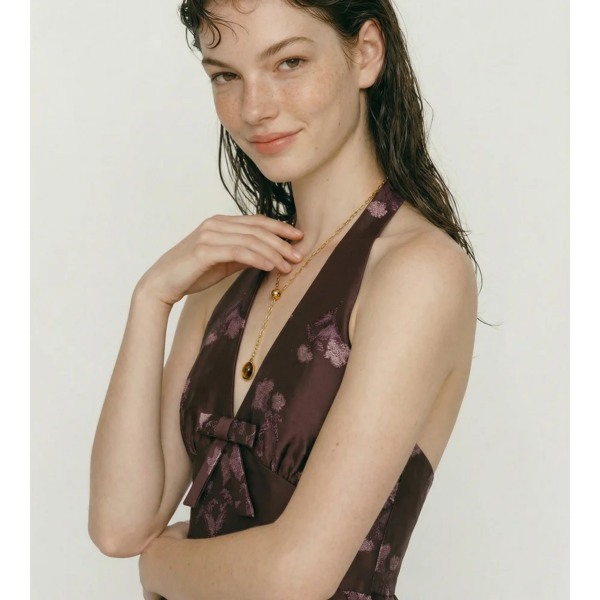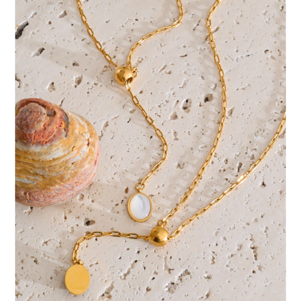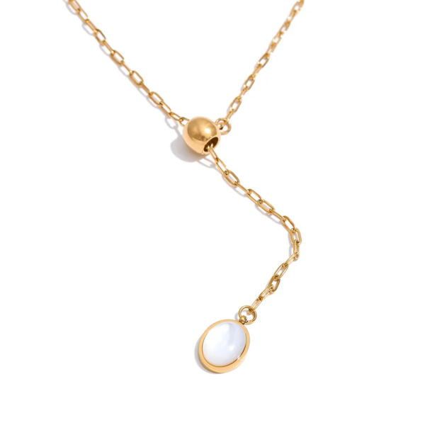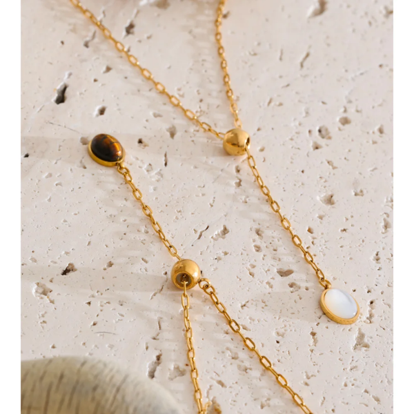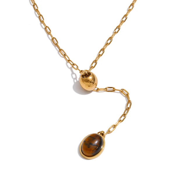 قلادة بتصميم سلسلة متدلية بحجر طبيعي ،ستانلس ستيل مقاوم للخدش، طلاء ذهب 18ثابت، لايتأثر بالماء ولايسبب التحسس