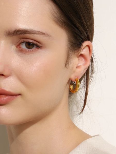 تراچي حلق مفتوح مرصع بالزاركون الملون ،ستانلس ستيل مقاوم للخدش، طلاء ذهب 18ثابت، لايتأثر بالماء ولايسبب التحسس
