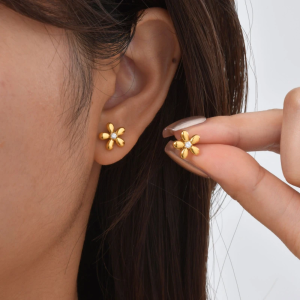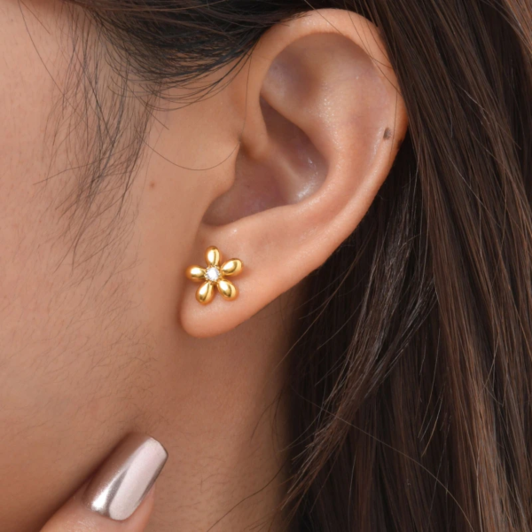 تراچي بتصميم زهرة ،ستانلس ستيل مقاوم للخدش، طلاء ذهب 18ثابت، لايتأثر بالماء ولايسبب التحسس