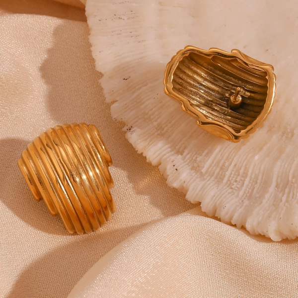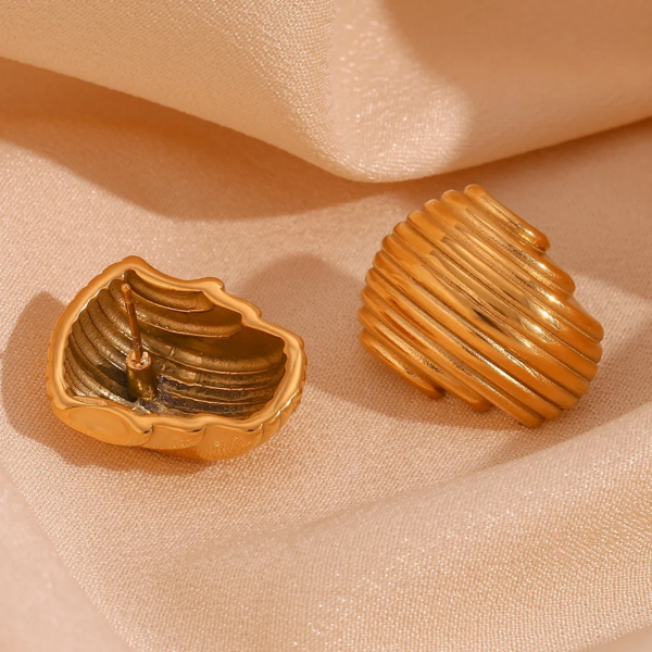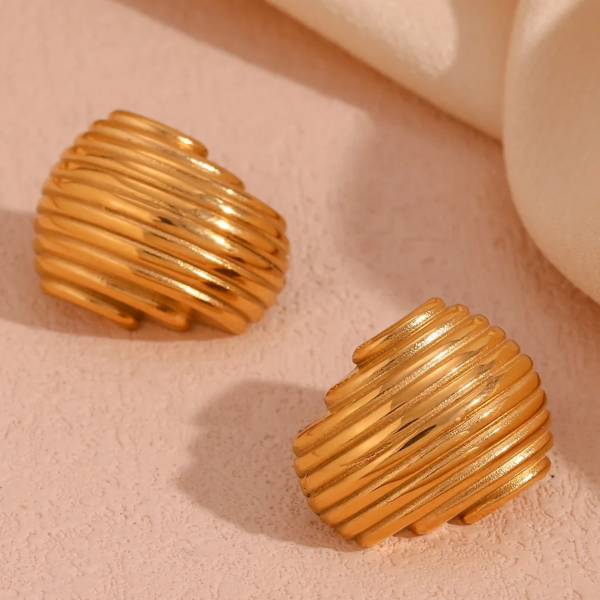 تراچي بتصميم هندسي مجوف ،ستانلس ستيل مقاوم للخدش، طلاء ذهب 18ثابت، لايتأثر بالماء ولايسبب التحسس