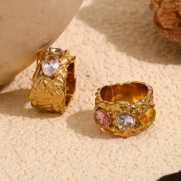 طقم ملون وأبيض يحتوي على تراچي ،سوار ،خاتم، ستانلس ستيل مقاوم للخدش، طلاء ذهب 18ثابت، لايتأثر بالماء ولايسبب التحسس