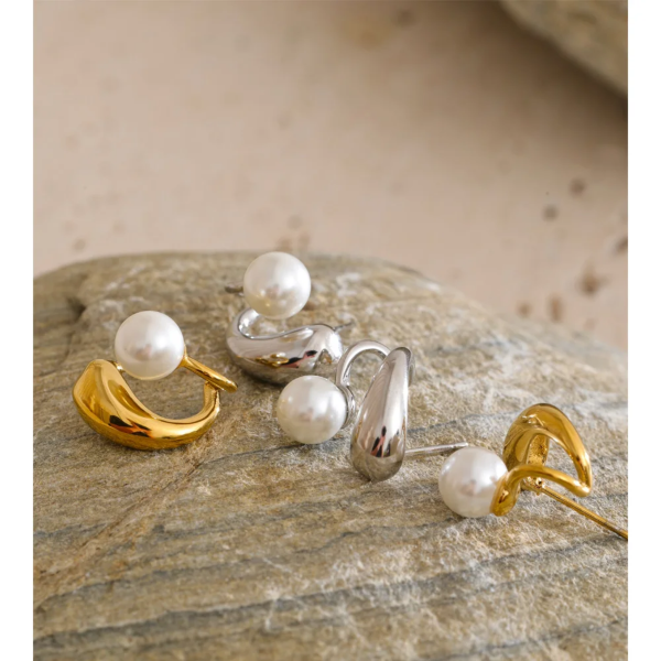 تراچي بتصميم ملتوي مطعم بلؤلؤة ،ستانلس ستيل مقاوم للخدش، طلاء ذهب 18ثابت، لايتأثر بالماء ولايسبب التحسس