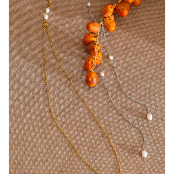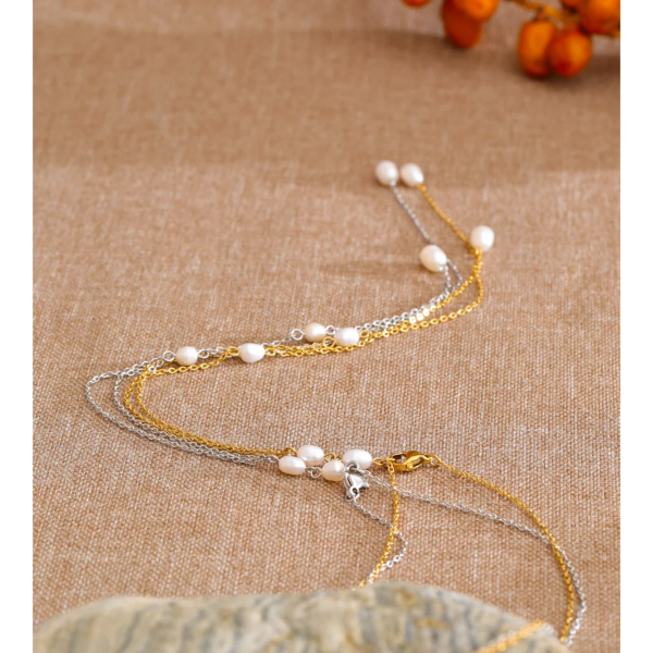 قلادة رفيعة مطعمة بحبات اللؤلؤ الطبيعي ،ستانلس ستيل مقاوم للخدش، طلاء ذهب 18ثابت، لايتأثر بالماء ولايسبب التحسس