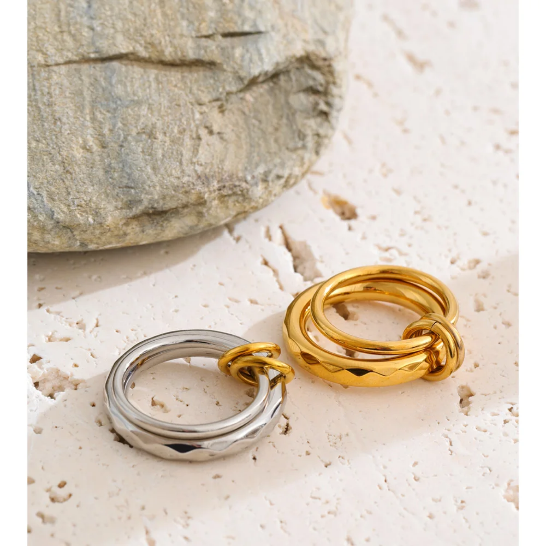 خاتم بتصميم عصري ذو طبقتين ،ستانلس ستيل مقاوم للخدش، طلاء ذهب 18ثابت، لايتأثر بالماء ولايسبب التحسس