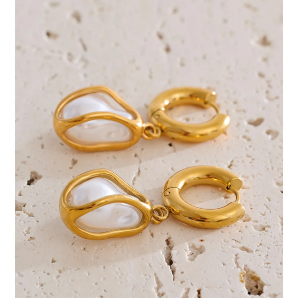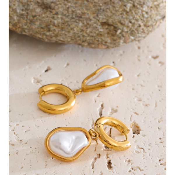 تراچي حلق متدلية باللؤلؤ الباروكي ،ستانلس ستيل مقاوم للخدش، طلاء ذهب 18ثابت، لايتأثر بالماء ولايسبب التحسس