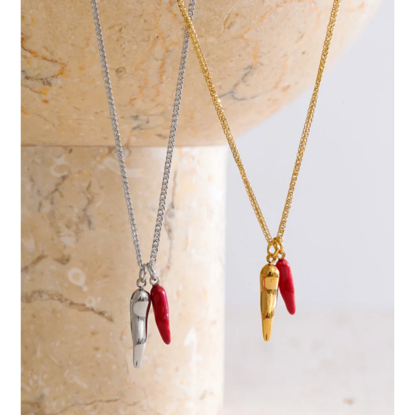 قلادة بتصميم فلفل حار ،ستانلس ستيل مقاوم للخدش، طلاء ذهب 18ثابت، لايتأثر بالماء ولايسبب التحسس
